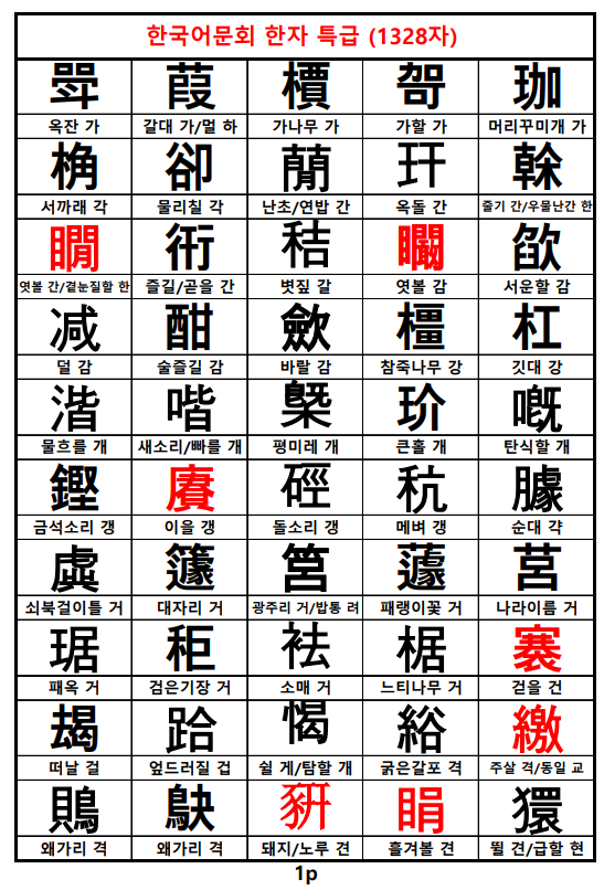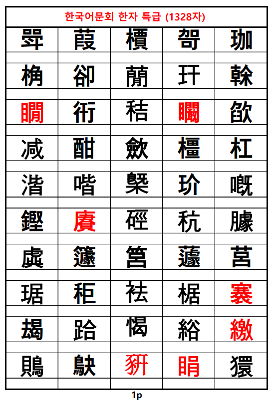 한국어문회 특급에서는 1,328자의 새로운 배정한자가 추가됩니다.