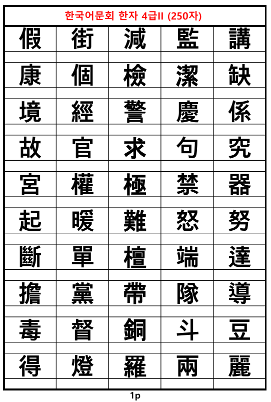 | 준 4급 | 750 | 400 | 중급 常用漢字 활용의 중급 단계(상용한자 750자, 쓰기 400자) |