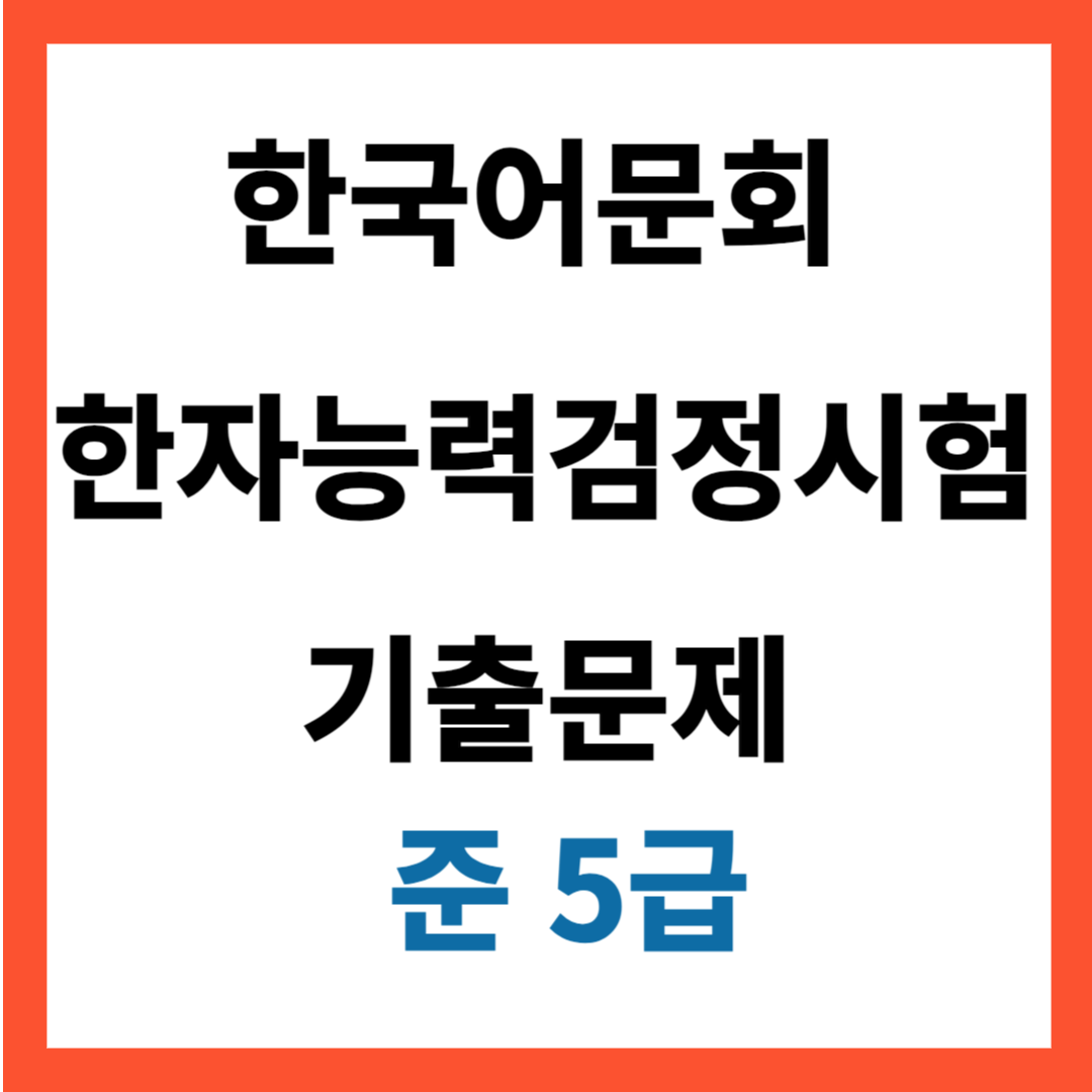 한국어문회 준 5급 기출문제입니다. 준 5급부터 난이도가 상승하며 새로운 배정한자 100자가 추가됩니다.