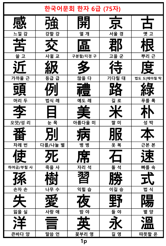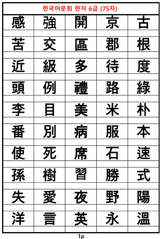 첫 한자 쓰기 문제가 나오는 한국어문회 준 6급 시험을 통과하셨나요? 조금 더 개수가 늘어난 6급에도 도전해 보세요!!